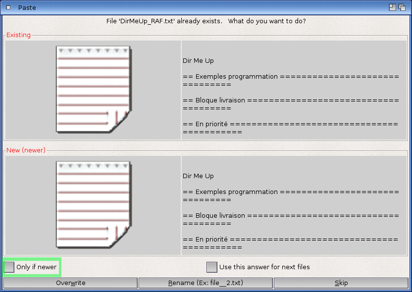 - Lors de la copie d'un répertoire vers un autre emplacement où un répertoire du même nom existait déjà, un message du type "[repertoirecopier] création impossible du répertoire RAM Disk:photo" était affiché. Ce n'est plus le cas.