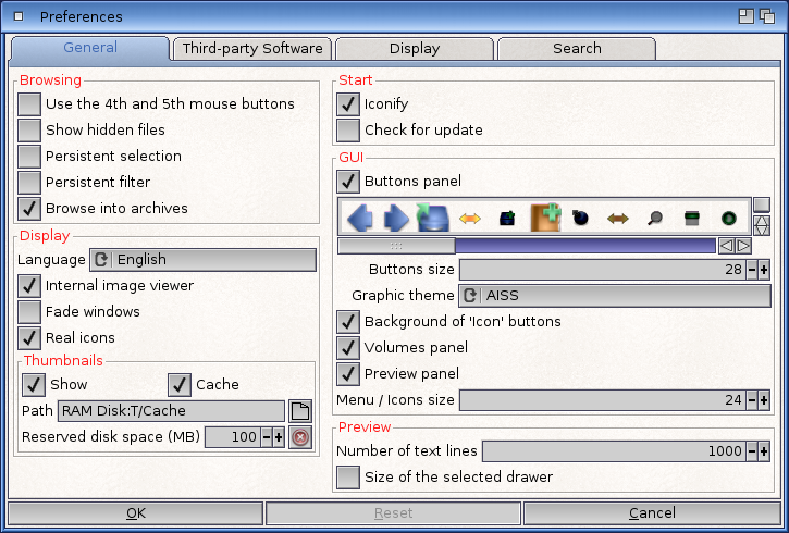 - Possibilité de choisir un logiciel externe pour les images et les sources.